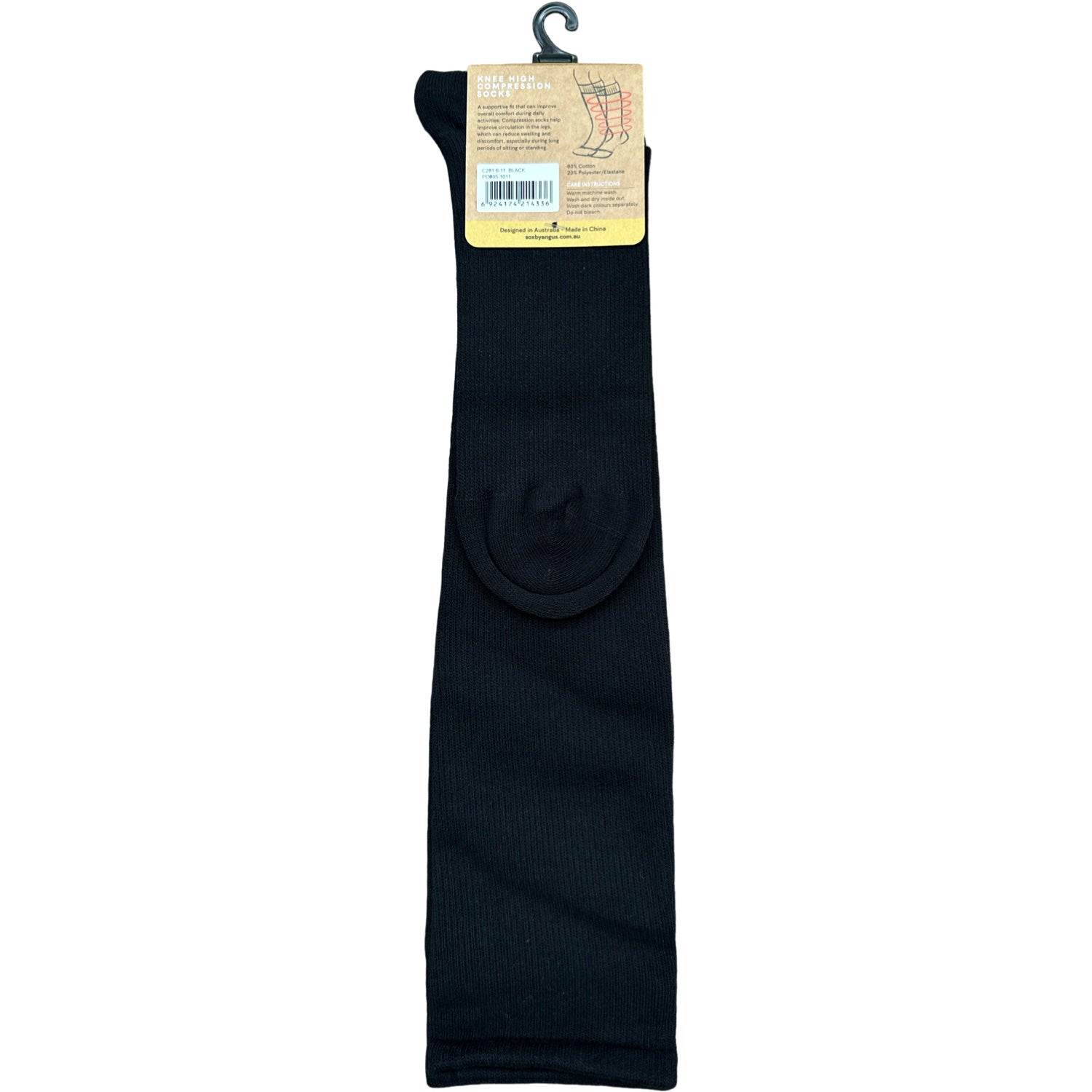 Prevent deep vein thrombosis (DVT) and leg swelling during long flights or car rides with the consistent support of compression socks. Materials: 80% Cotton, 20% Polyester / Elastane Care Instructions: Warm machine wash. Wash & Dry inside out. Wash dark colour separately. Do not bleach.